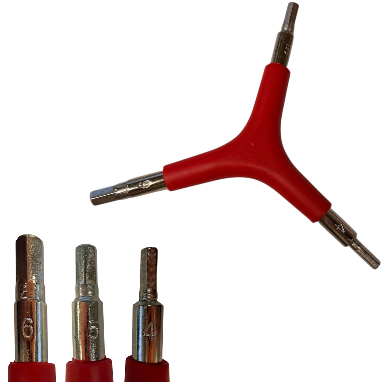 L-Għodda Y tgħaqqad it-tliet daqsijiet ta 'sokit metriċi l-aktar komuni: 4 mm, 5 mm u 6 mm. Dawn huma mmarkati b'mod ċar fit-truf rispettivi tal-għodda.